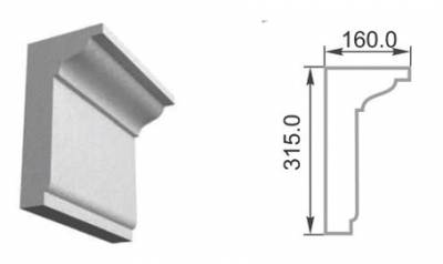 Фасадный карниз изготавливается из пенопласта, армирующей сетки и полимерного цементо-клеевое покрытия. Пенопласт покрывается сеткой со всех сторон. Затем наносится покрытие. Фасадные карнизы можно выбрать как из стандартных, которые есть у нас в каталоге, так и по вашим чертежам или эскизам. Может быть изготовлен длиной до 2.5 метров. Толщину и глубину можно найти на изображении.