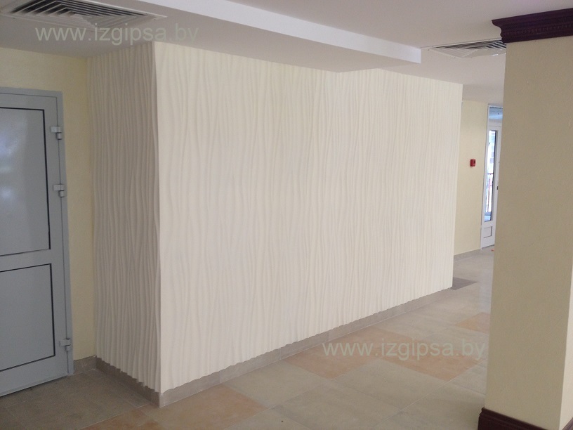 3D панели нашего производства украсили еще одно помещение под Минском. Общая площадь панелей составила около 30 метров квадратных. Вид панелей: http://www.izgipsa.by/load/3d_paneli_iz_gipsa/paneli_3d_artikul_10035/1-1-0-203