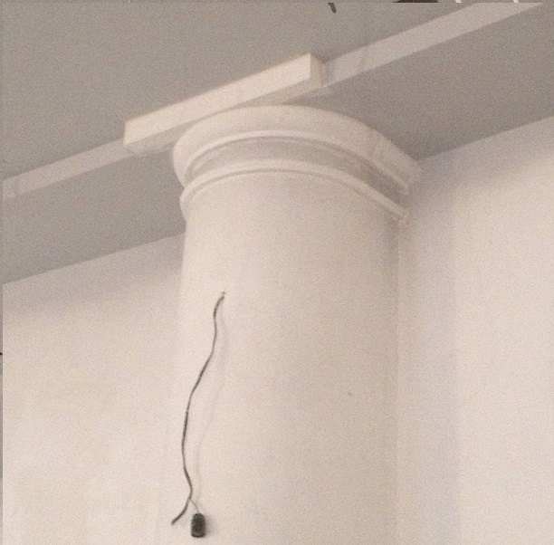 Массивные колонны обрамлены изделиями нашей мастерской: базами и кольцами из гипса.